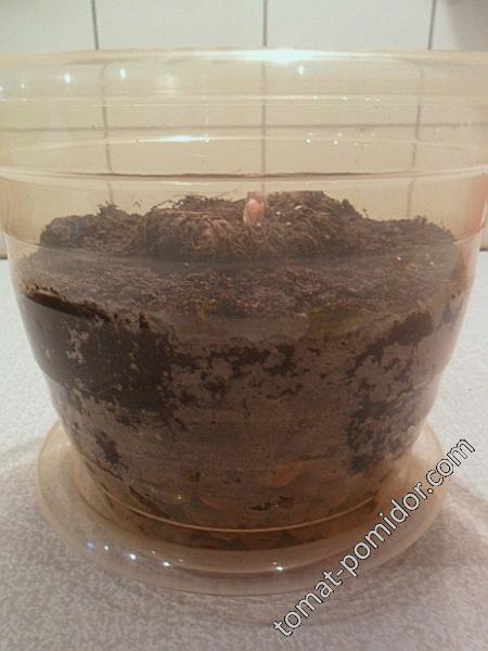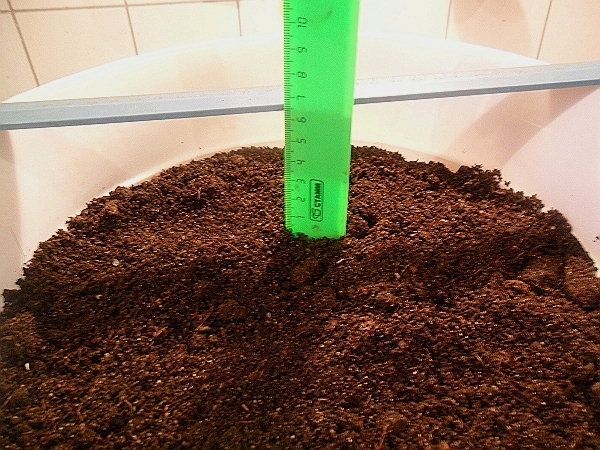 - Примерить, как поместится в емкость клубень. Он не должен быть выше уровня горшка. Если до верха остается свободными 1,5-2,0 см, то это идеальное расположение клубня. Если он заглублен больше, значит нужно снова подсыпать почвы и проверить правильно ли все сделано.