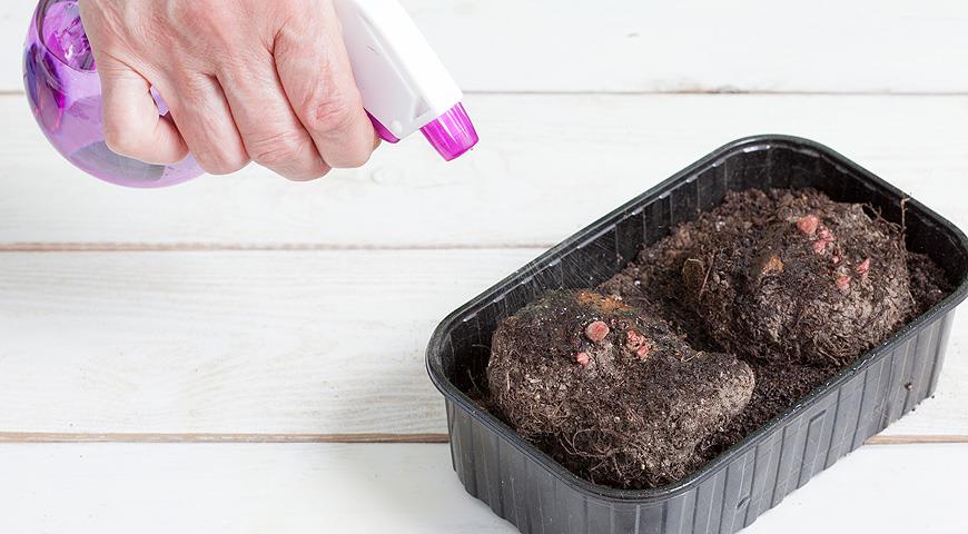 - Удалить с клубней омертвевшие корни и обеззаразить их фунгицидом либо марганцовкой.