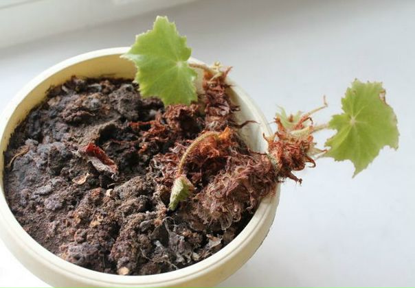 При нехватке влаги или ее излишке у бегоний наблюдаются одинаковые симптомы: растение вянет, стебель, будто намокший, размягчается, начинает искривляться, листья поникают. Чтобы выяснить, что случилось, необходимо обратить внимание на земляной ком. Если он стал как камень, то тут явно нехватка влаги. Если он очень мягкий, сырой – корень загнил.
