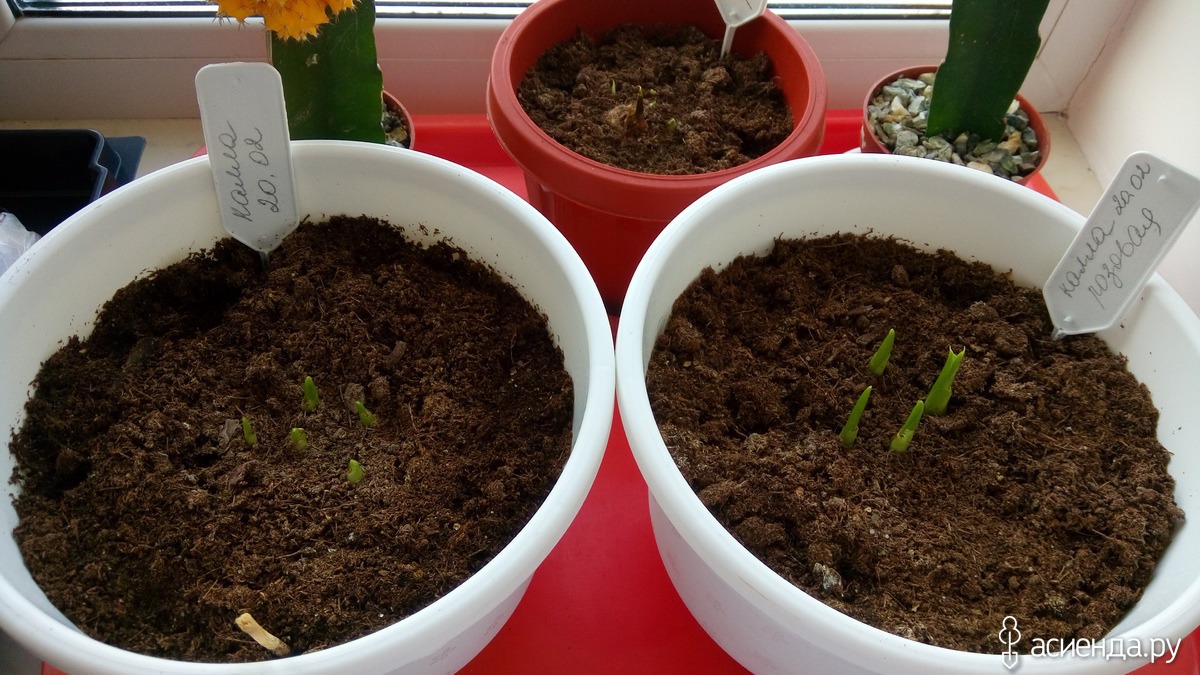 | Вариант первый | Проращивать в помещении. За 30-35 дней до возможных последних заморозков высаживают луковицы в горшки или ящики | При использовании ящиков расстояние между луковицами не должно быть меньше 8 см. Сверху луковицы засыпают землей высотой в 2 см | Через месяц, когда луковицы прорастут, и угроза заморозков пройдет, растения можно высаживать в почву |