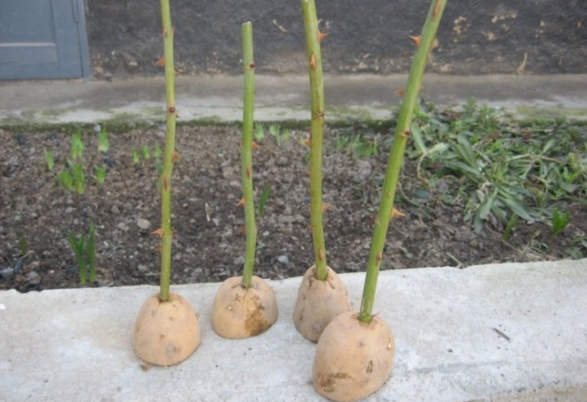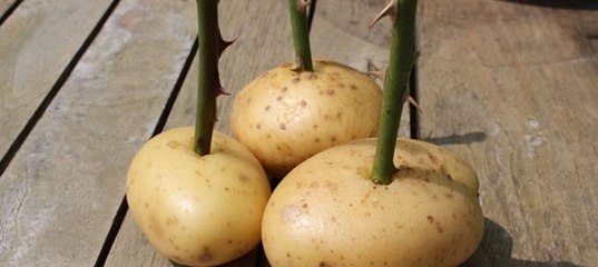 В прошлом году уже почти осенью быстро укоренились в картофеле черенки роз.