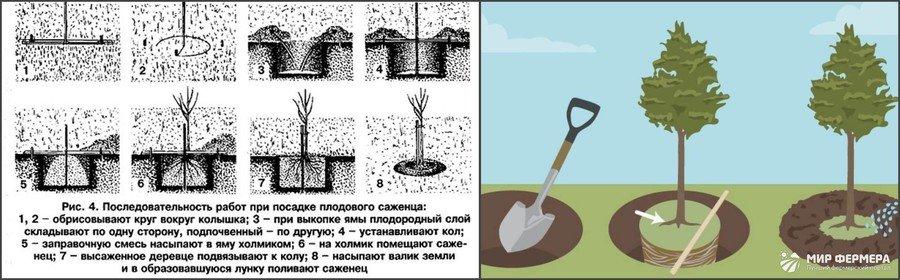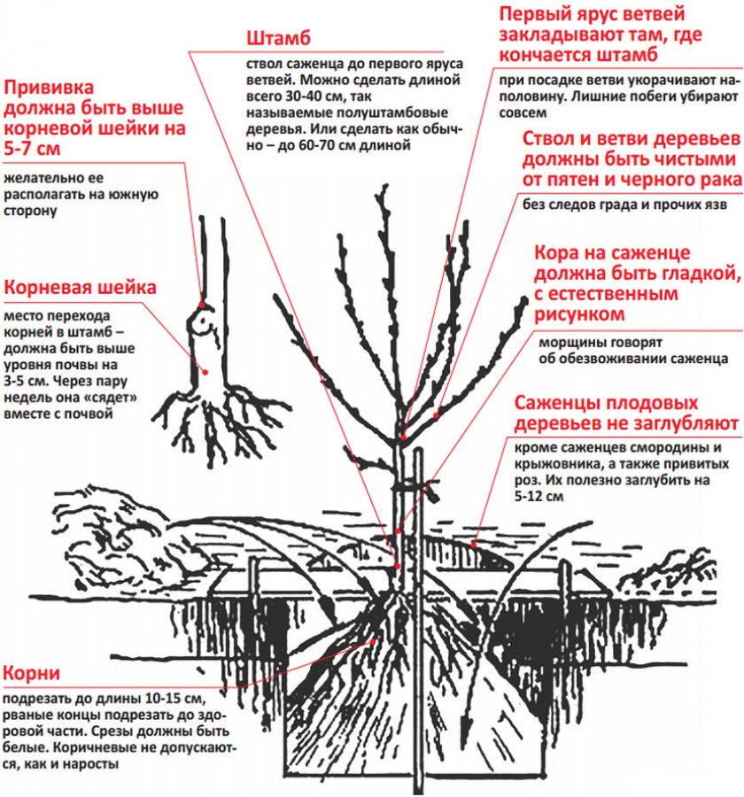 Как посадить плодовое дерево с голыми корнями, шаг за шагом