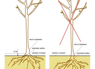 Землю на дне ямы рыхлят и выкладывают прямо на дно десять целых сырых яиц. После чего заполняют яму той самой смесью золы и почвы, в которой обмакивали корни, и слегка присыпают сухой землей. Настало время установить в ямку наш саженец. Здесь самое главное – избежать лишнего заглубления. Необходимо, чтобы корневая шейка (место где ствол дерева переходит в корень, не прививка) оказалась на одном уровне с верхним слоем почвы.