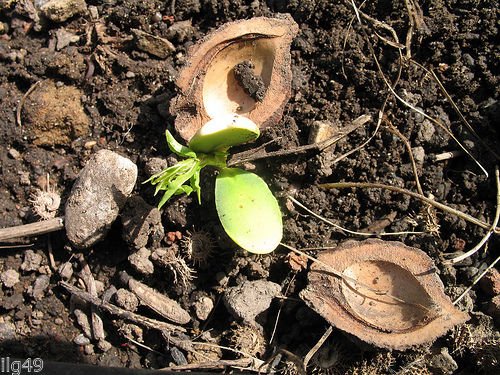 В заранее подготовленный влажный почвенный субстрат семена помещаются на глубину до 8 см. Горшки также как и в предыдущем способен накрываются пленкой и периодически проветриваются. Уже через 3-4 месяца можно ожидать появление первых ростков.