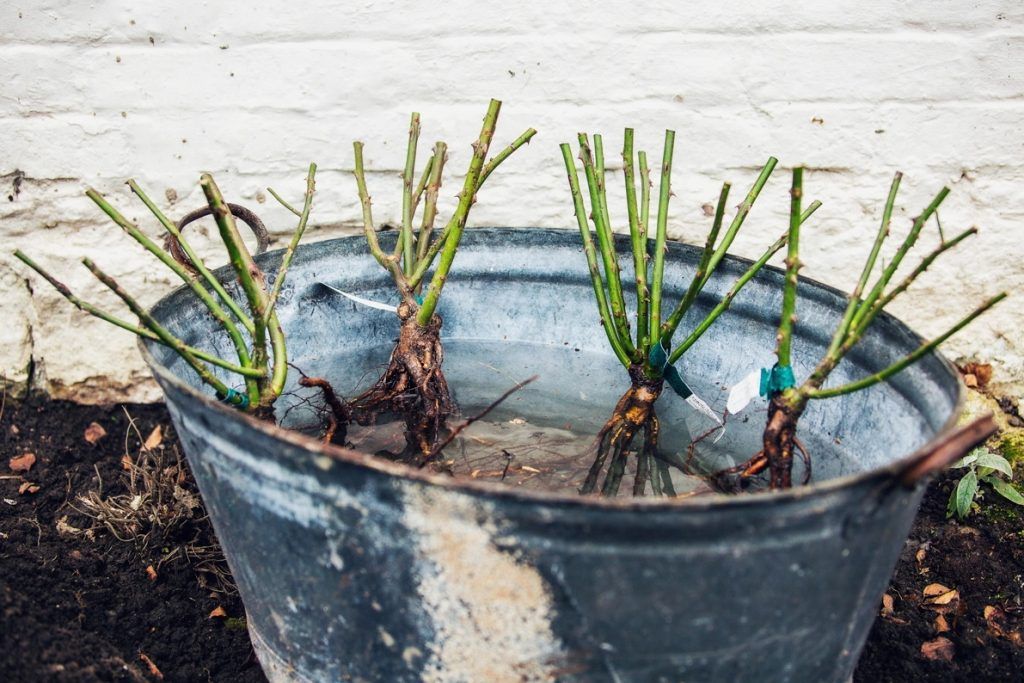 При посадке розы в контейнер почки должны находиться на уровне или чуть выше уровня почвы. Роза будет расти более энергично, если место соединения бутонов находится не ниже уровня почвы. Если вы планируете перезимовать розу на открытом воздухе в холодном климате, почки должны располагаться чуть ниже уровня почвы.