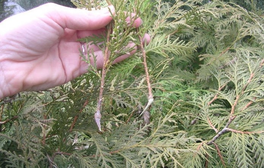 Высыхание — Это обычная проблема, связанная с Thuja. Хотя многие люди справляются с этой ситуацией, обрезая пораженный участок, лечение может быть более эффективным, если на дерево распылить экстракт юкки.