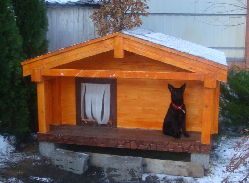 Для любой собаки односкатная крыша будет лучшим вариантом. А крупные собаки, как и мелкие смогут лежать на ней, отдыхать.