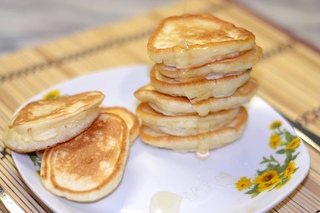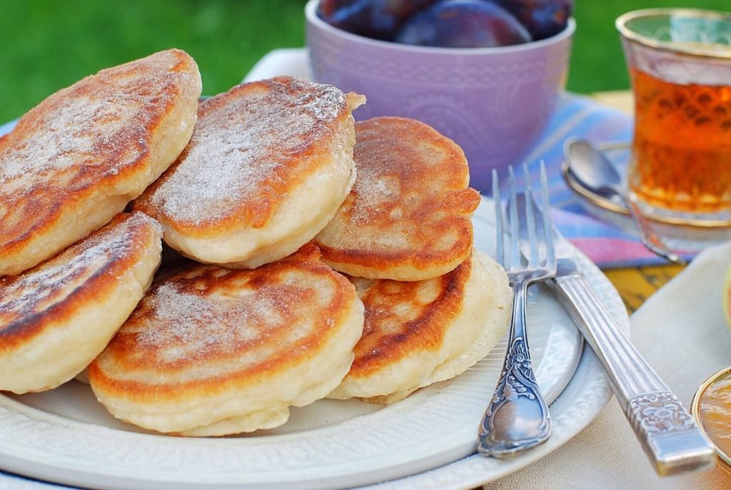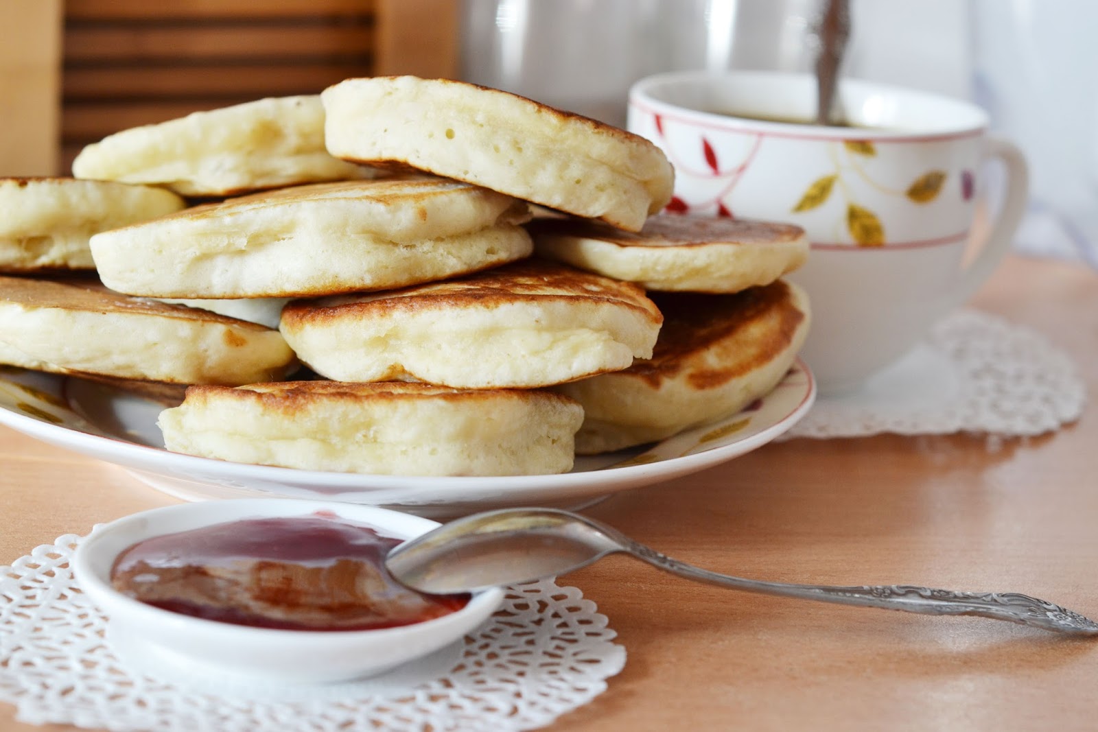 Такие оладушки хороши к завтраку или в качестве перекуса. Дети обожают их с чаем или стаканом молока. Да и взрослые не меньше любят их еще с детства и кушают со сметаной, вареньем, джемом, медом, сгущенкой, свежими ягодами. Также их преимущество в том, что готовятся они очень быстро и просто, и их всегда можно приготовить, когда гости на пороге. Одни сплошные достоинства — давайте начнем готовить!