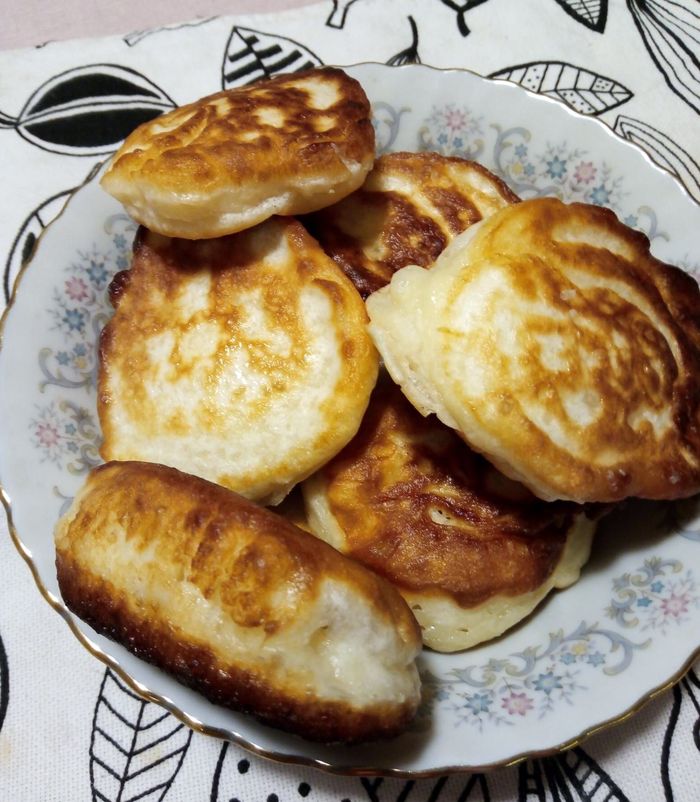 #шаг 6Готовые пышные оладьи выкладываем на бумажный полотенец, дав стечь лишнему маслу и подаем к столу. Они вкусные и теплые и холодные. Приятного аппетита!