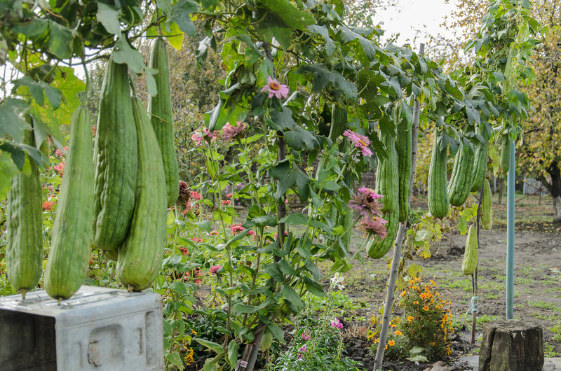 Чем севернее регион, тем меньше плодов на люффе, с одного растения получают 8- 10 плодов, поэтому сажайте не больше 5-6 семечек.