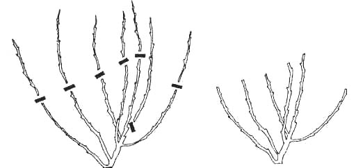 На фото: Обрезка чайно-гибридной розы перед укрытием