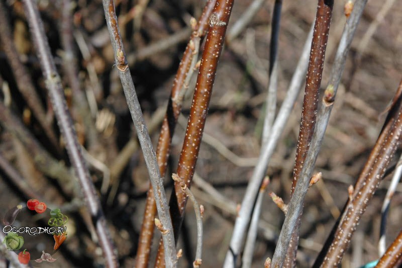 По мере старения они отходят в стороны и склоняются к земле все сильнее, на них становится меньше листьев и ягод, они делаются черными, корявыми и полусухими. До такого обычно не доводят, так как эти корявые ветки — рассадник щитовки, почечного клеща и прочей нечисти.