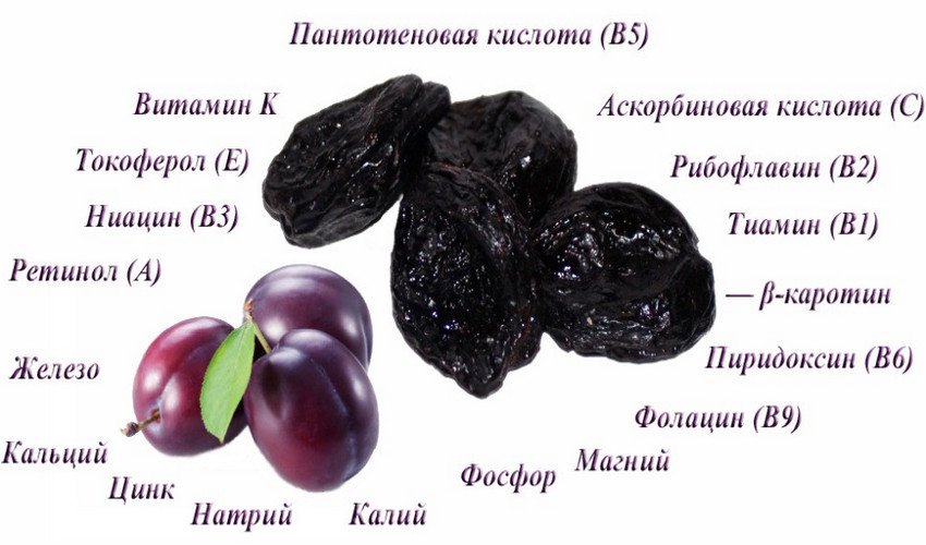 Плоды чернослива очень полезны для организма. Они содержат множество пищевых волокон и налаживают пищеварительный процесс. Также они содержат большое количество калия, тем самым помогая восполнить его недостаток в организме. А благодаря феноловым соединениям, входящим в их состав, фрукты обладают лёгким слабительным эффектом. Ещё в плодах много витамина «К», который хорошо влияет на свёртываемость крови.