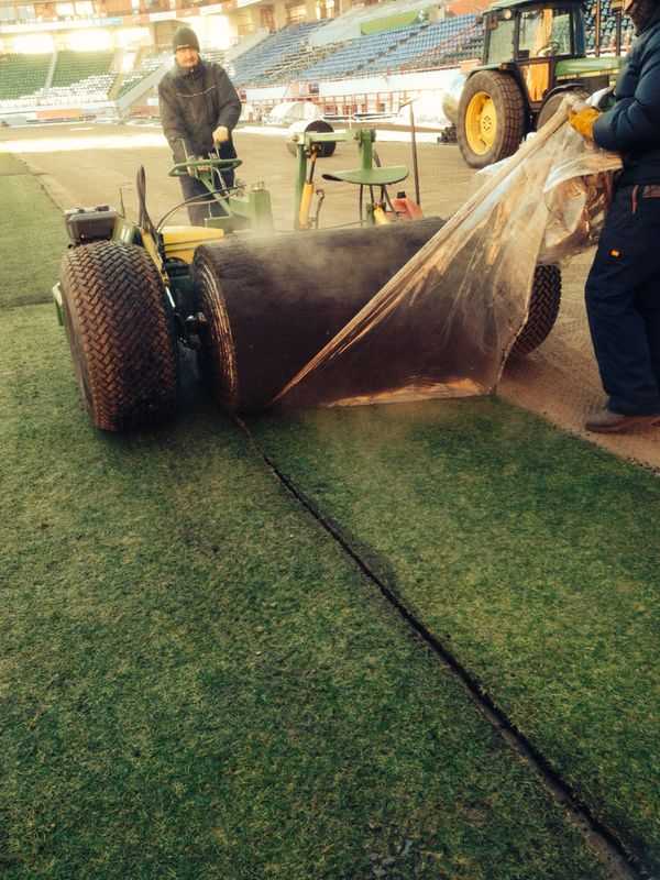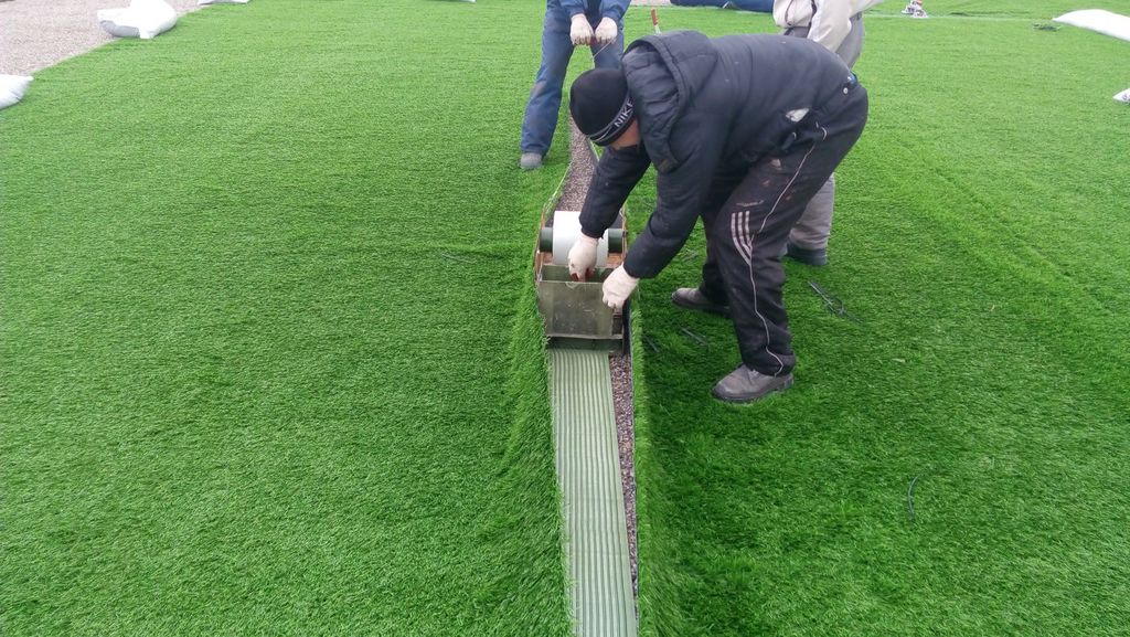 рулоны травы достаточно нежные, на них не стоит наступать при укладке. Если обойтись без этого нельзя, нужно подложить фанеру или доску, чтобы распределить давление на длину и ширину подложки.