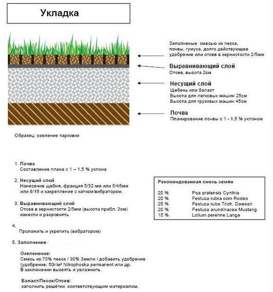 Для укладки стоит начать с удаления камней, мусора, сорняков. Чтобы трава не пострадала, требуется дренаж.