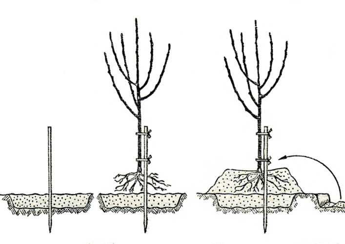 — привязывая деревце к колышку, перекрутите шпагат в виде восьмёрки — чтобы во время ветра ствол меньше раскачивался и не раскололся;