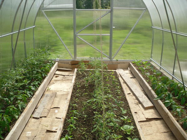 Специалисты придерживаются мнения, что намного удобнее расположить грядки по всей длине теплички, вдоль стенок.