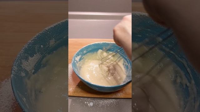 - Перемешивайте, пока не перестанут оставаться сухие кусочки и не получится однородное жидкое тесто.