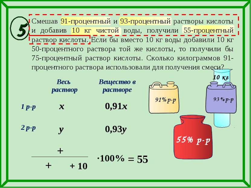 5. Процентные растворы (% = доли на сто или грамм / 100 мл)
