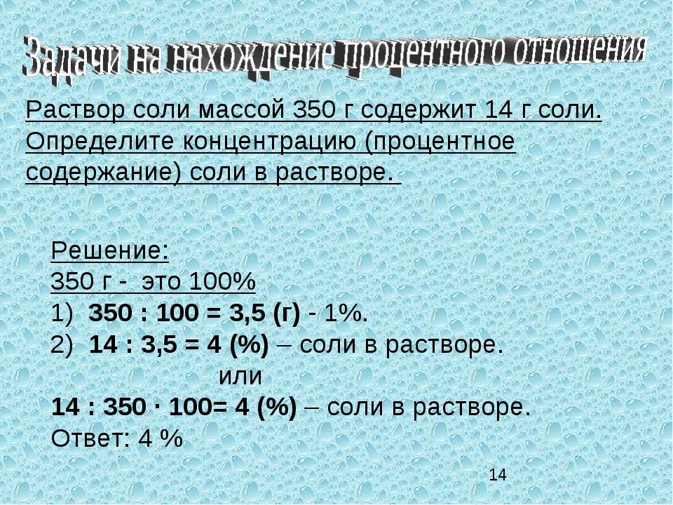 Пример 1. Если вы хотите получить 200 мл 3% NaCl, вы должны необходимо 0,03 г / мл x 200 мл = 6,0 г NaCl в 200 мл воды.