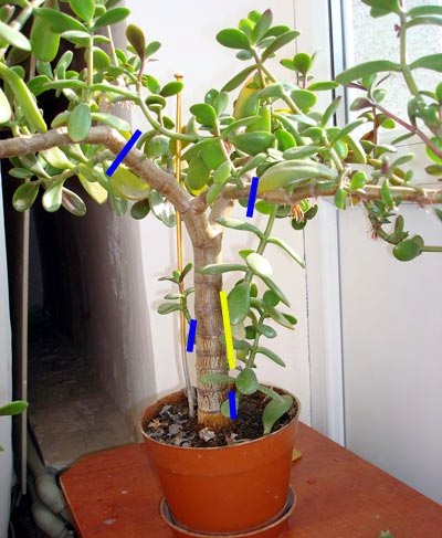 - Формирование кроны и ствола толстянки. Обрезка и прищипывание