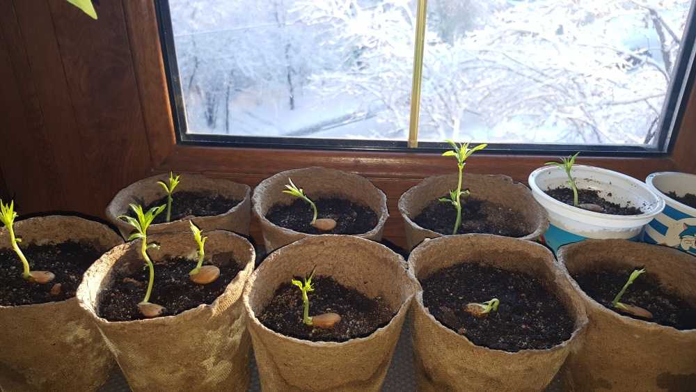 Теплый способ. Можно прорастить косточки в горшках при комнатной температуре и естественном освещении.