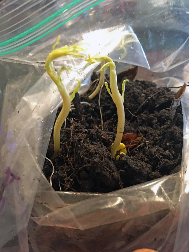 - Когда через 3-4 месяца появятся ростки, снимите пленку и переставьте сеянцы в хорошо освещенное место без сквозняков и прямых солнечных лучей.