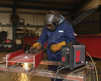 - Профессиональные. Это мощные аппараты, подключаемые к трехфазной сети и обеспечивающие максимальный рабочий ток реза до 160 А. С ними можно раскраивать заготовки толщиной до 55 мм.