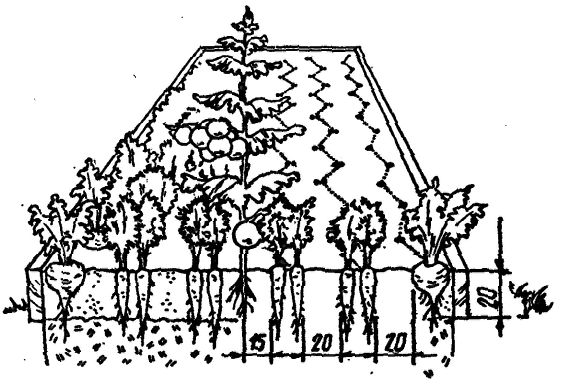 В северной — более устойчивые к холоду разновидности, такие как редис, брюква, морковь. Холодные ветра чаще дуют с севера, поэтому желательно защитить от них растения. В этой части по краю участка высаживают ягодные кустарники: крыжовник, смородину или малину. Можно достаточно плотно посадить подсолнечник, кукурузу или другие высокие и красивые растения. Деревья здесь нежелательны, они будут чрезмерно затенять землю.