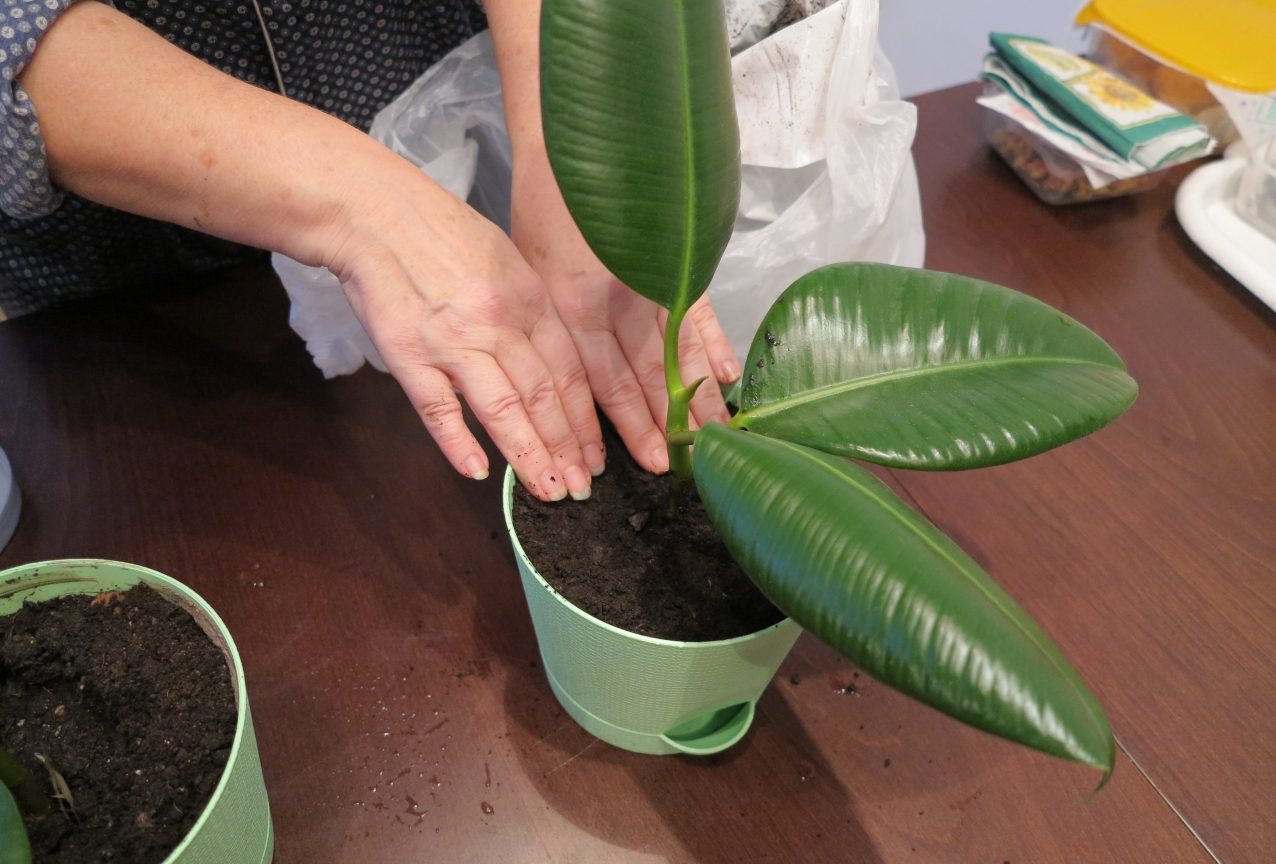 Молодое растение советуют пересаживать 1 раз в год. При каждой пересадке следует выбирать для него горшок на 2 размера больше. Старые фикусы тоже требуют периодической пересадки, но не так часто. При пересадке часть старого грунта нужно заменить новой.