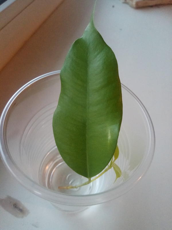 При крупнолистных видах фикусов можно вырастить новое самостоятельное растение из листа. Размножение таким путем можно проводить с большими листьями самого лучшего качества. Срезать листы нужно с небольшой частью междоузлия. Делается два среза: основной и еще один косой, чтобы корневая система развилась быстрее. Листок нужно промыть под проточной водой или вымочить, чтобы избавиться от ненужного сока. Если этого не сделать, процесс формирования корней может значительно затянуться. Срез лучше обработать стимулятором корнеобразования, что необязательно, но даст больше шансов на то, что листок превратится в самостоятельное растение.