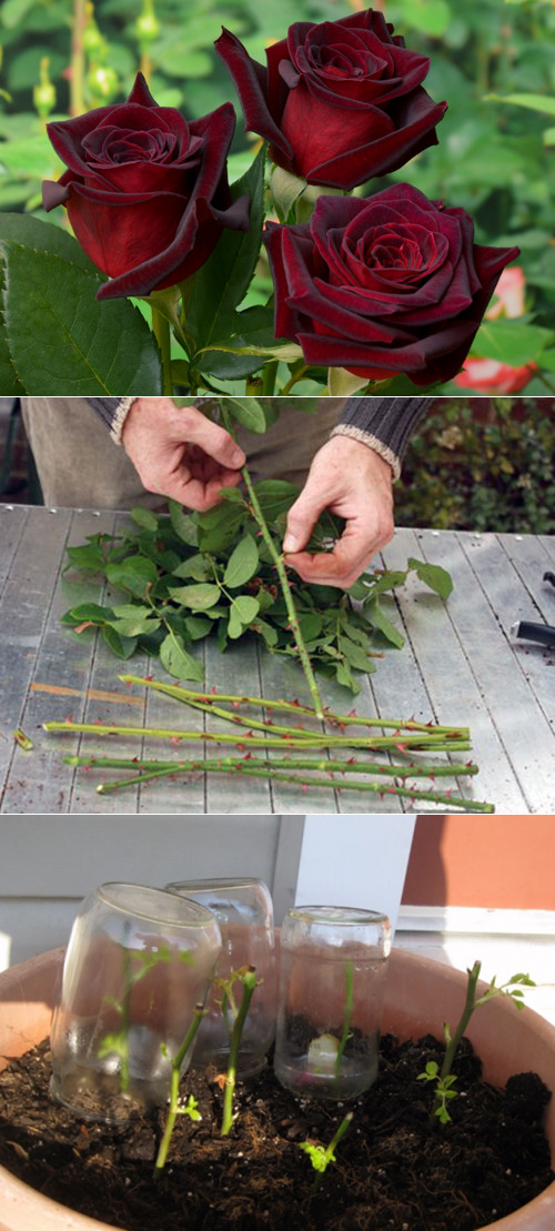 В песок черенки розы высаживают на глубину в 15 см и на расстоянии 20-ти сантиметров. Песок надо уплотнить и обильно полить черенки. Нужно следить, чтобы участок высаженных черенков находился в тени. Лучше приживаются черенки розы, находящиеся в теплице или под самодельной индивидуальной теплицей из пленки. Регулярно пленку нужно снимать для проветривания побегов. В зимнее время черенки роз должны обязательно находиться под пленкой, чтоб не допустить обмораживания.