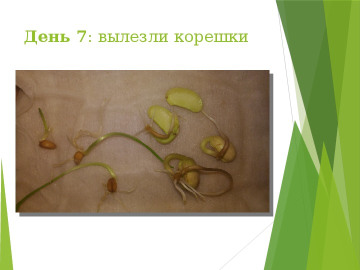 К 5-му дню все семена фасоли имели корневые волоски.