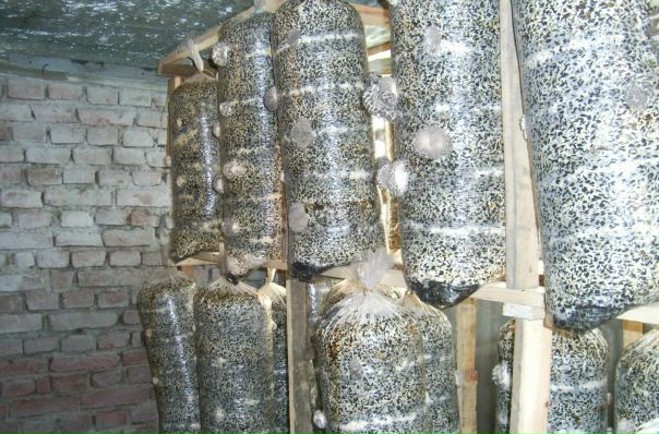Грибы требуют постоянного внимания. Увлажняйте пакеты один раз в сутки, почаще проветривайте помещение, так как в ходе развития вешенки вырабатывают в большом количестве углекислый газ. Чтобы получить обильный урожай, через неделю после начала выращивания грибов, включайте в подвале свет. Через десять дней после закладки мицелия вы сможете получить первый урожай.
