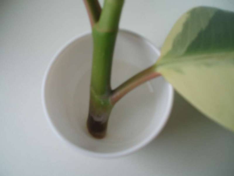 Крупнолистным лировидным особям обрезают 2/3 листа, сокращая уровень испаряемой влаги. Каучуконосным разновидностям садоводы скручивают листья в трубочку и аккуратно фиксируют резинкой или веревкой, сохраняя влагу в отростке. Молочко, оставшееся на отростке, препятствует формированию корней. Решить проблему поможет вымачивание нижней части стебля в теплой воде (2 часа) с дальнейшей обработкой среза стимулятором роста. Располагая древесным углем, многие хозяйки непременно пожелают провести дезинфекцию среза.