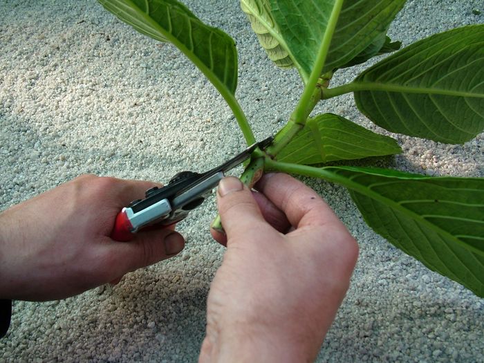 - Верхушку необходимо срезать – она непригодна для черенкования.