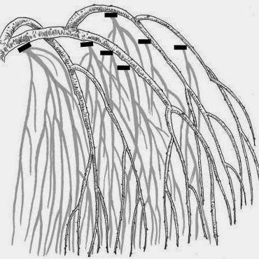 Обычно плакучий сорт прививают или окулируют на вертикальный ствол ивы, но я беру черенок плакучей ивы, укореняю черенок, затем приучаю свое новое растение расти как одноствольное дерево. 5 или 6 футов ростом я тренирую его, чтобы у него выработалась плачущая голова.