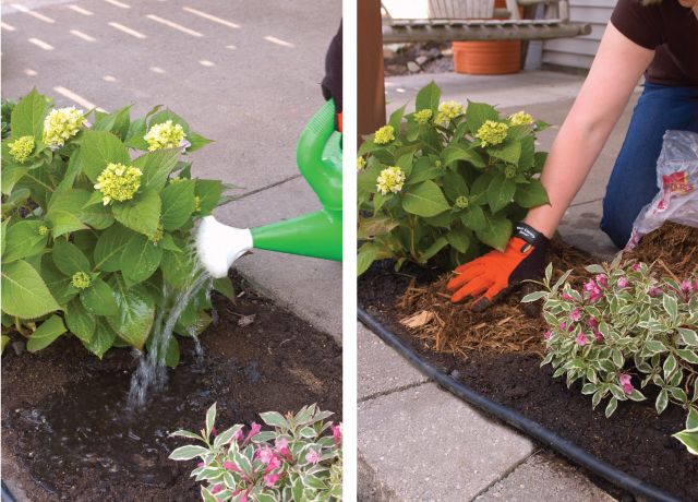 - Полейте новый куст. Лучше всего проводить глубокое и тщательное замачивание в растворе Stark® Tre-Pep® Fertilizer. (При осенней посадке подождите до весны, чтобы получить наилучшие результаты.) Это эффективное стартовое удобрение помогает деревьям и растениям расти быстро и энергично.После полива, если почва уплотняется, не забудьте добавить достаточно почвы, чтобы заполнить отверстие до уровня земли.