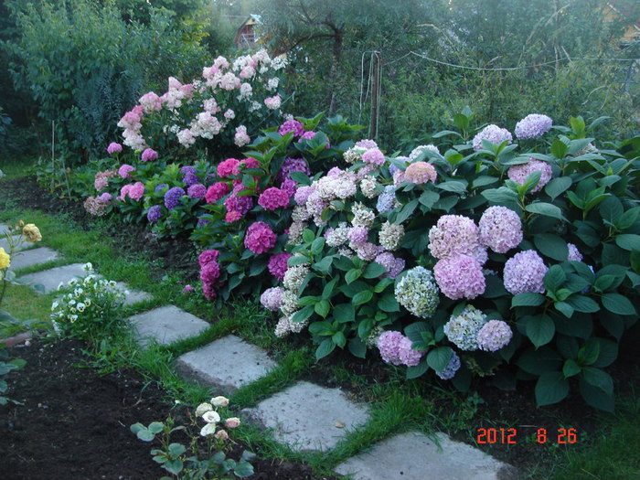 В ландшафтном озеленении гортензии используют для одиночных посадок и в группах.