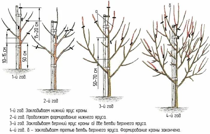 Схема формирования кроны абрикоса по годам