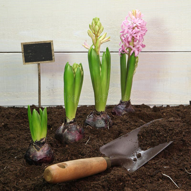 Самыми красочными и необычными луковичными растениями являются гиацинты, они отличаются яркими густыми соцветиями цилиндрической или конической формы. Период цветения у гиацинтов начинается рано весной, после чего наземная часть цветка отмирает и луковица находится в состоянии покоя в теплой земле, формируя новые зачатки побегов с соцветиями, листьями и детками. Такие луковицы нужно ежегодно выкапывать летом и подготавливать к посадке осенью, этим гиацинты отличаются от других декоративных растений, которые высаживаются обычно весной.