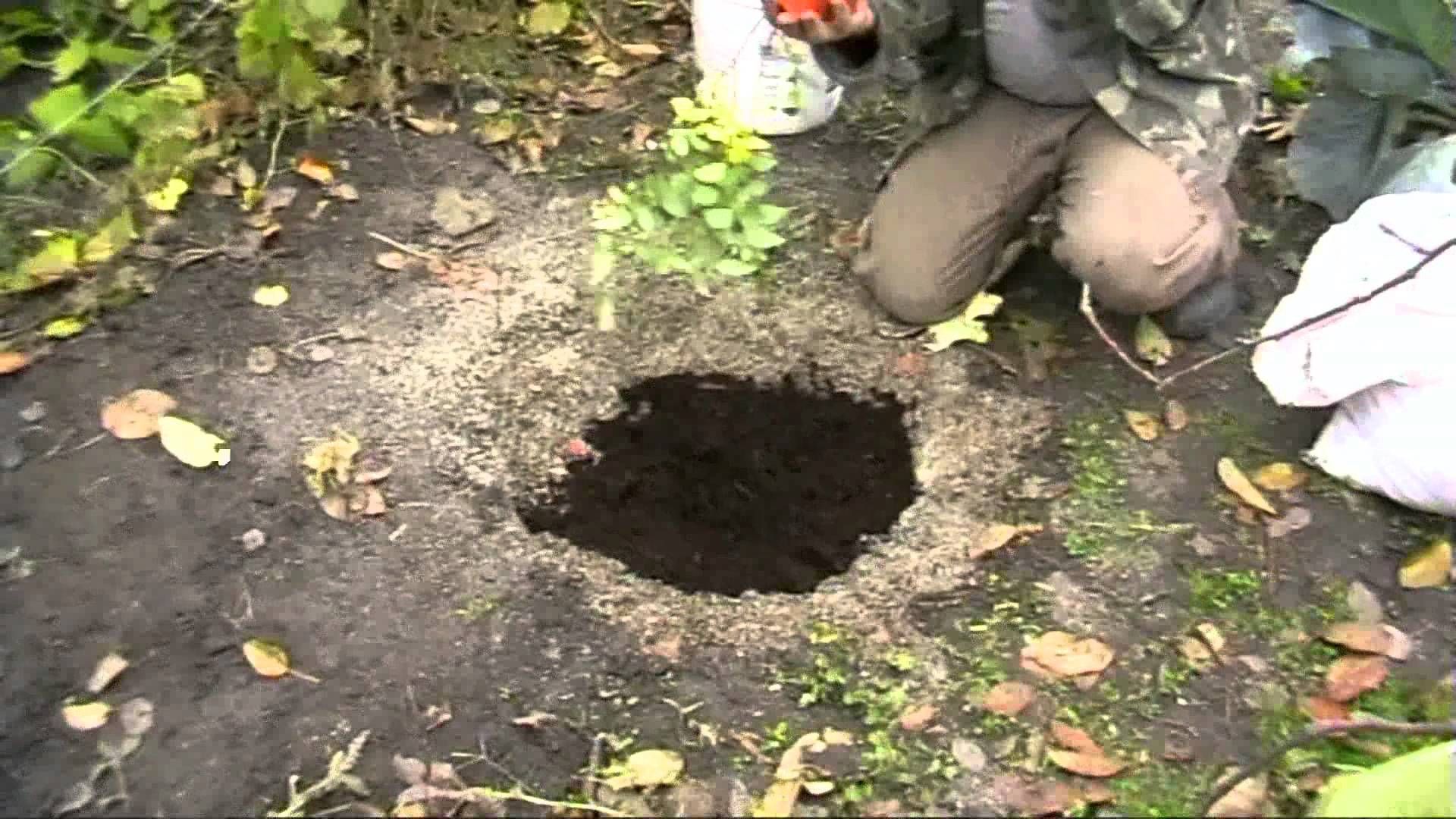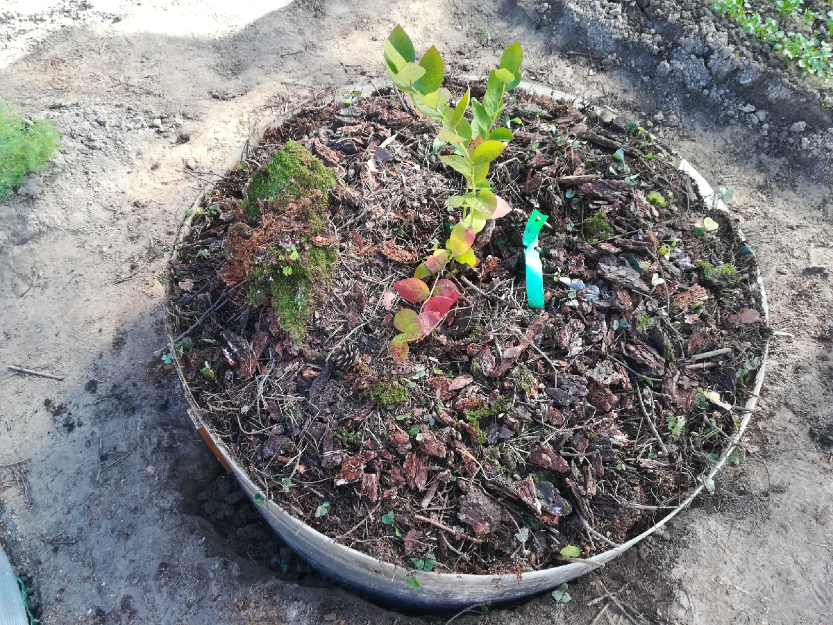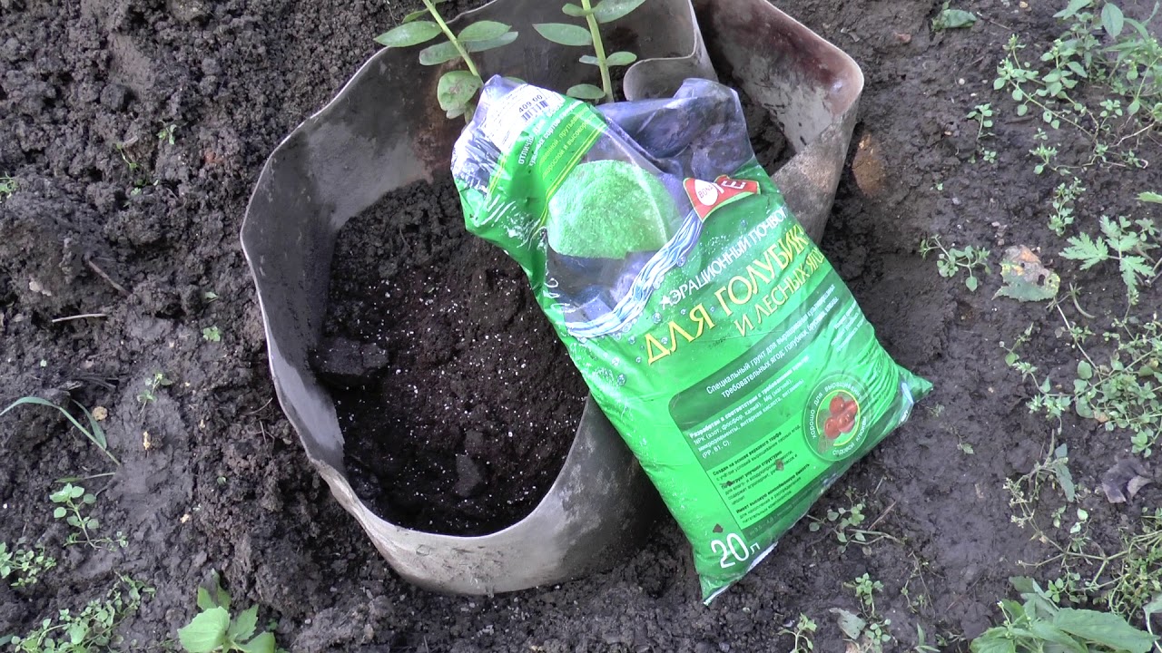 Лучше всего брать почву на участке, где растут мята и щавель или серую подзолистую почву из хвойного леса. Содержимое посадочной ямы желательно ограничить от окружающей почвы пищевой пленкой 100мкр, чтобы обеспечить стабильную кислотность.