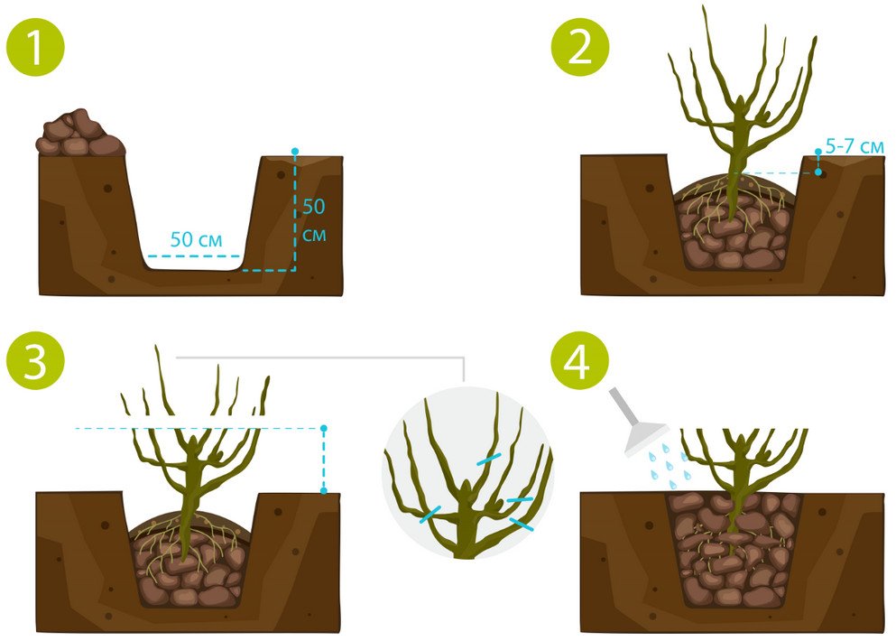 Между рядами оставляйте не менее 2 м, вне зависимости от сорта.