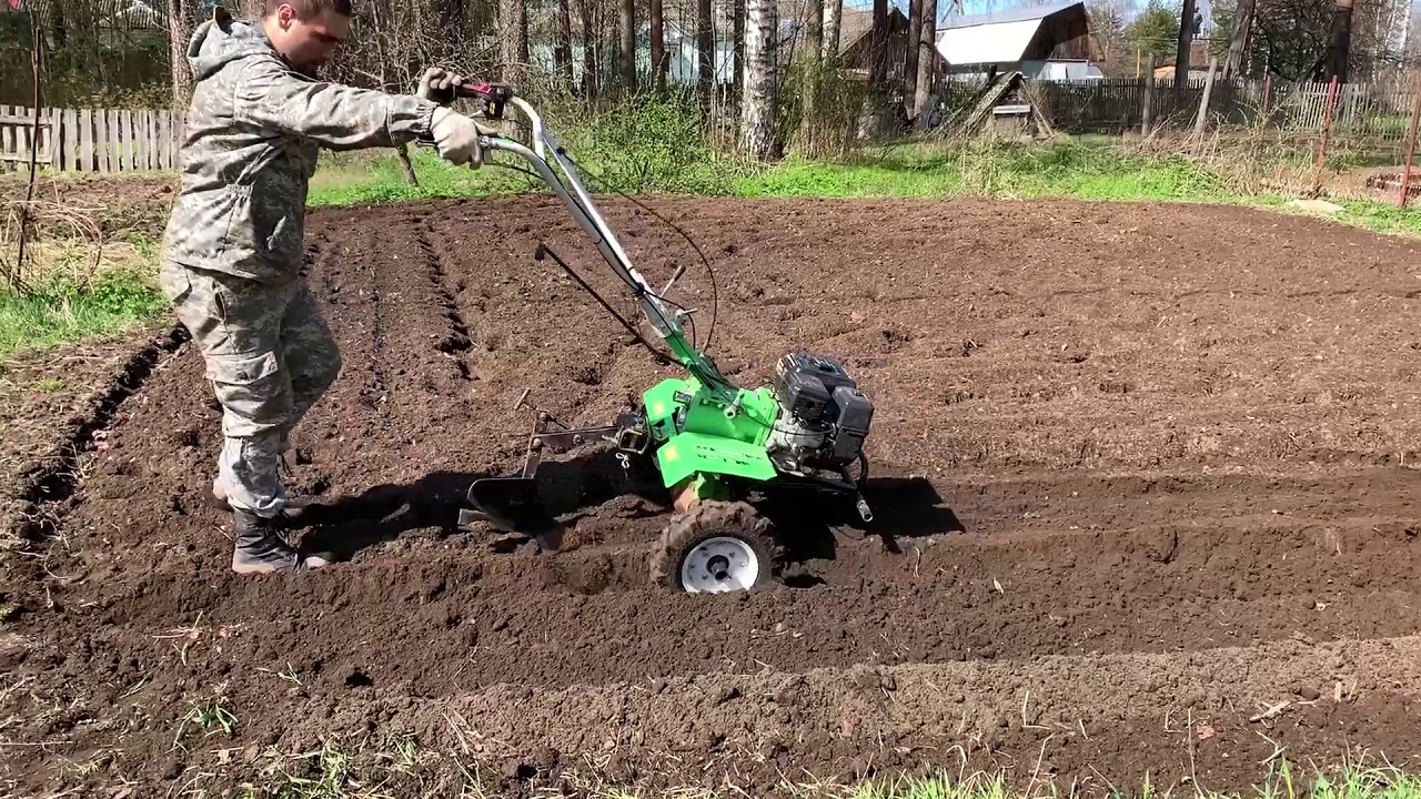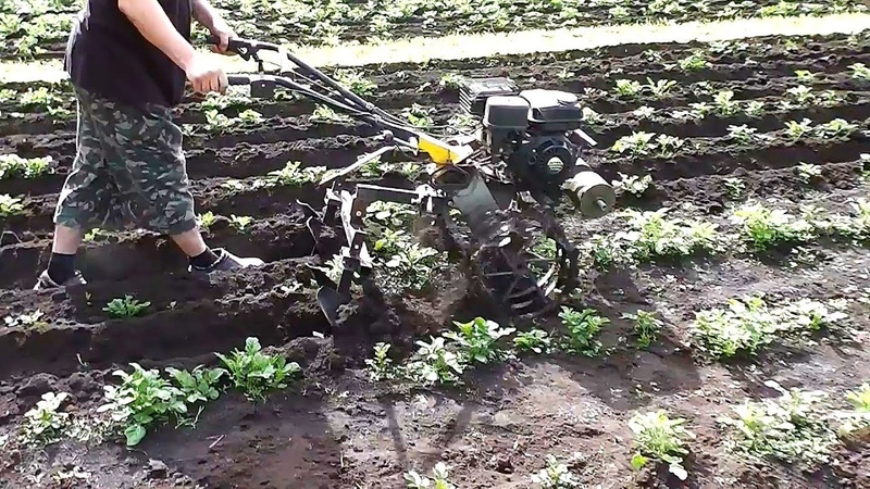 Техника подходит для работы на участках площадью не больше 20 соток. Они имеют небольшую (до 30 см) ширину захвата, благодаря чему можно работать в узких бороздах и междурядьях. Эти мотоблоки имеют небольшой вес, в них предусмотрены съемные ручки, за счет чего их очень удобно перевозить в багажнике автомобиля. - Легкие. Культиватор для посадки картофеля этой категории имеет более мощные (до 4 л. с.) моторы и массу около 60 кг. Ширина ключевого функционального органа (фрез) варьируется в пределах 50–90 см. Это делает легкие мотоблоки более производительными.