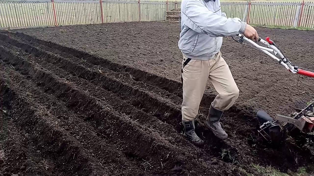 Посадка картофеля при помощи мотоблока осуществляется только после того, как была выполнена обработка грунта. Вначале участок нужно вспахать, а после бронировать. Это позволит почве насытиться кислородом и стать пышнее. Для вспашки грунта применяют особые фрезы или плуг.