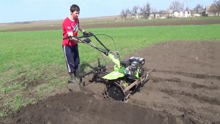 - Средние. Масса этих мотоблоков для посадки картофеля достигает 100 кг, а мощность их мотора может составлять 7 л. с. Многие средние агрегаты имеют коробку передач, включающую две скорости: вперед и назад. Маневренность дает им немалый приоритет перед предыдущими типами техники. За счет приличного веса с их помощью можно выполнять глубокое рыхление даже на самых твердых почвах без большой вибрации. Простота и удобство работы, хорошая производительность предоставляют возможность обрабатывать большие земельные участки.