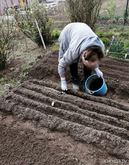 Заранее соберите почву с участка в мусорный пакет (или другую подходящую ёмкость) и поставьте в помещении, чтобы он прогрелся. При посеве используйте её для заделки бороздок с семенами.
