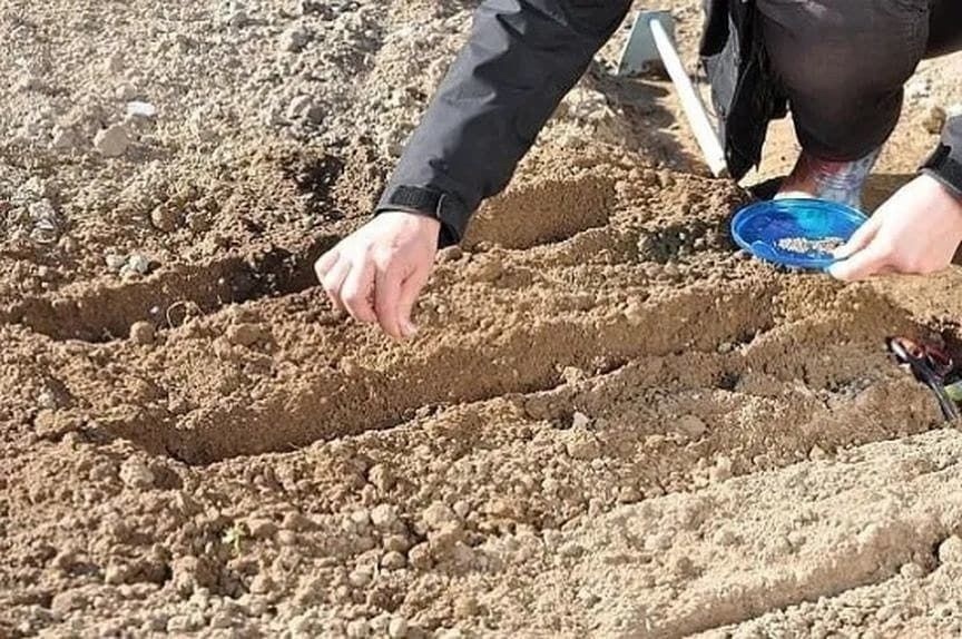 Вы также можете сажать вручную в меньшем масштабе, если у вас нет сеялки. Для этого рукояткой инструмента сделайте борозду, всыпьте семена и слегка прикройте.
