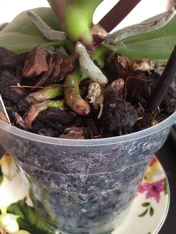 корни подвергаются воздействию элементов. В горшке со мхом или корой, корнями орхидеи