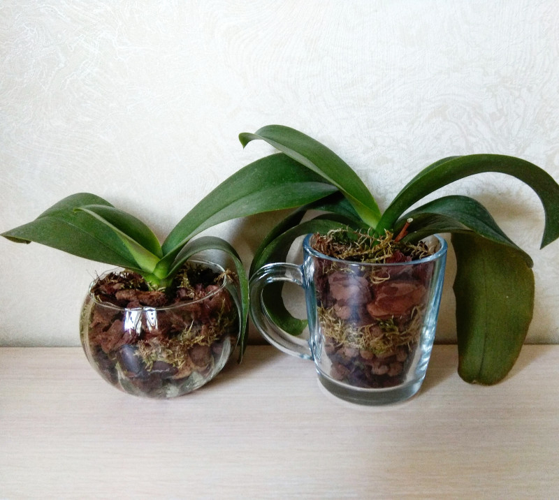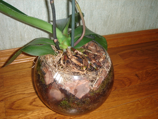 - Для орхидеи неприемлема пересадка в стеклянную тару, так как он не позволит корням «дышать». Подобная емкость может выполнить только декоративную функцию.